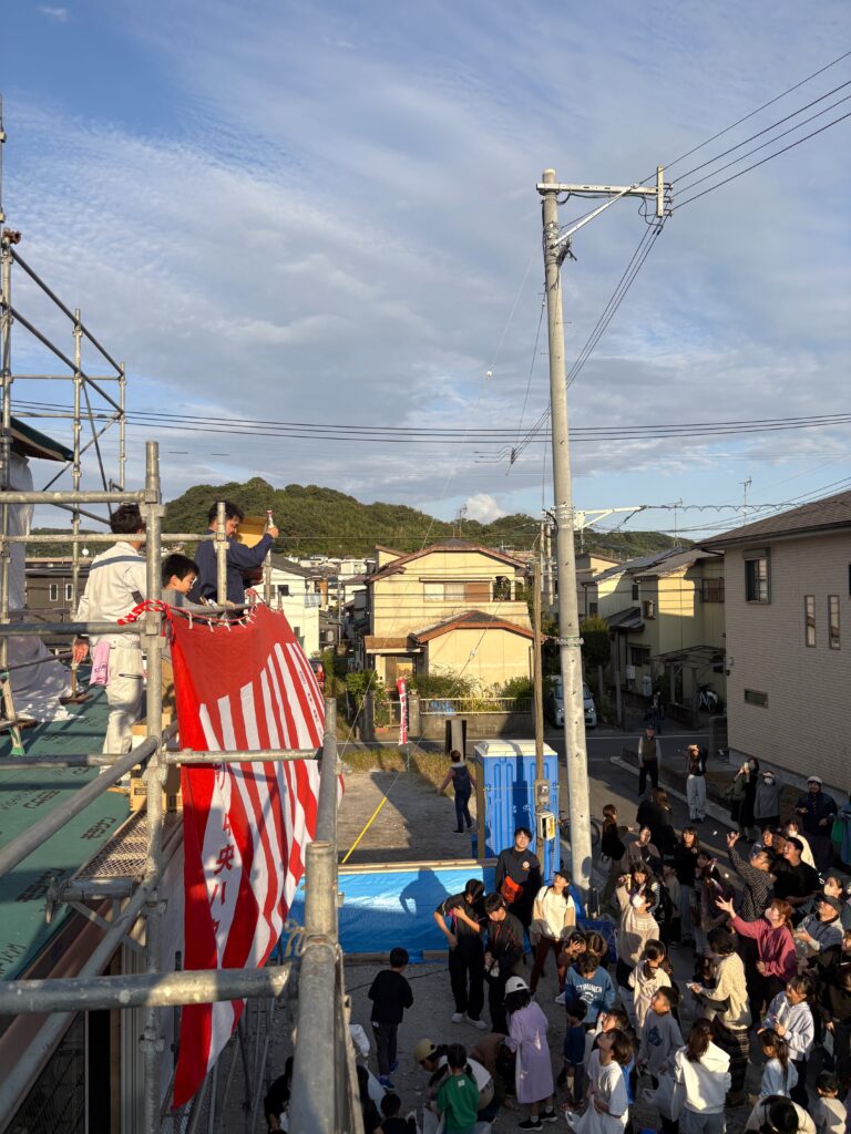 【社員Y君邸】笑顔あふれる“もち撒き”と上棟式を開催しました!