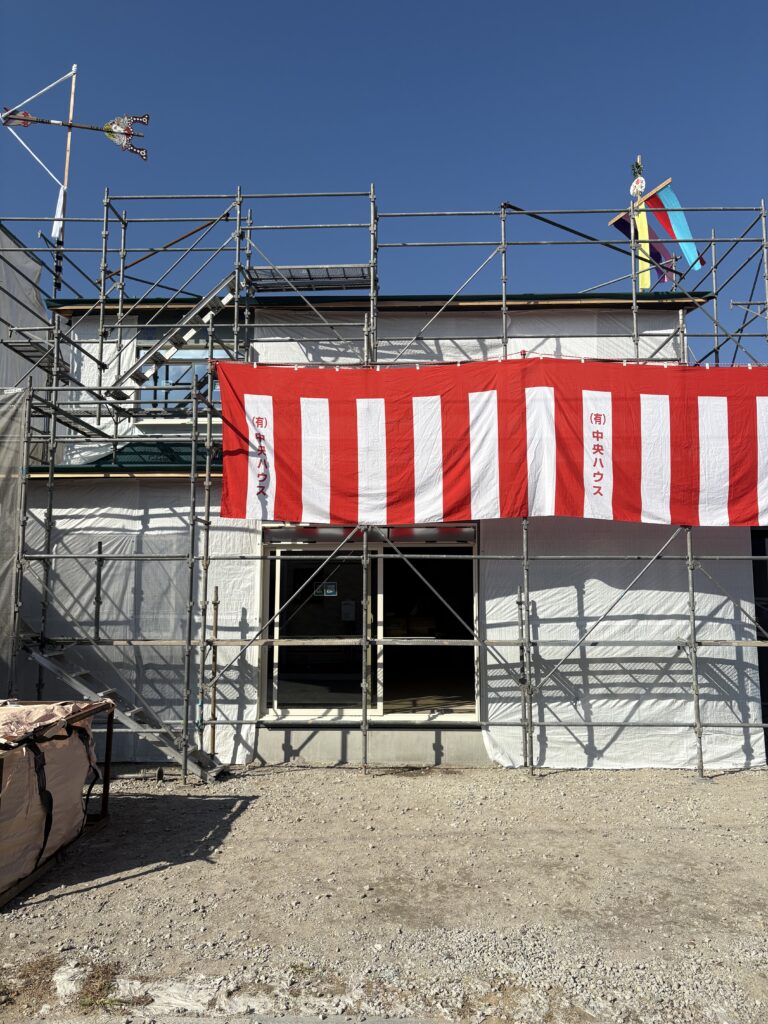 本日は、かねてより準備を進めていた中央ハウスの社員・Y君邸の上棟式を、