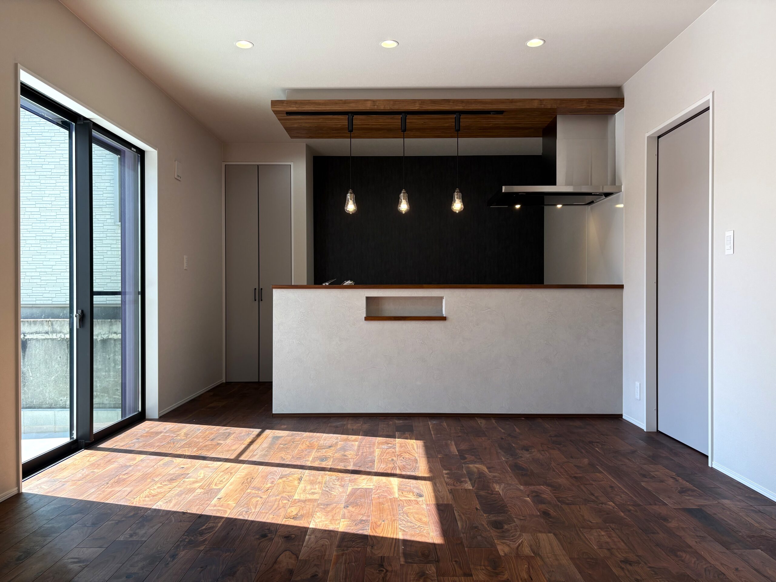 キッチンに立った際リビングでくつろぐ家族の様子が見え、子育て家族も安心です。コミュニケーションもとりやすく、家族の絆がより一層深まります。また、必ずリビングを通ってお出かけや帰宅をするので家族の時間を必ず確保できる設計プラン。