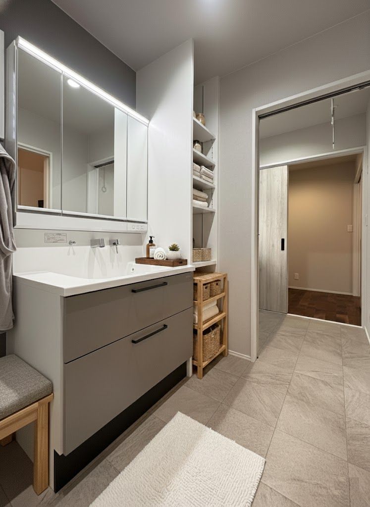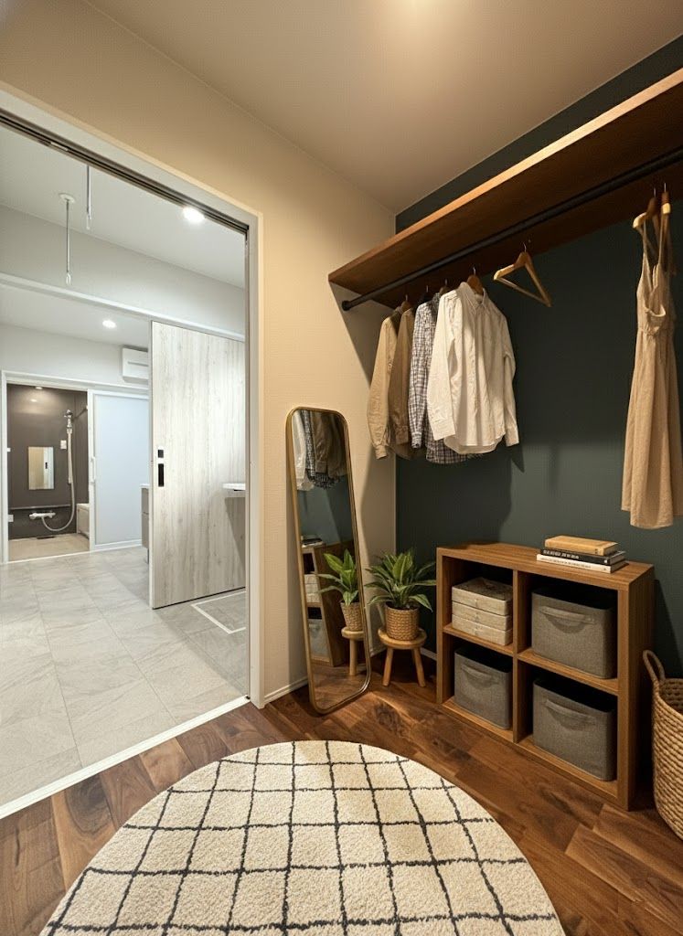 「洗濯~干す~しまう」を最小限の移動距離で行うことで、毎日の家事負担を軽減できる使い勝手の良い動線!