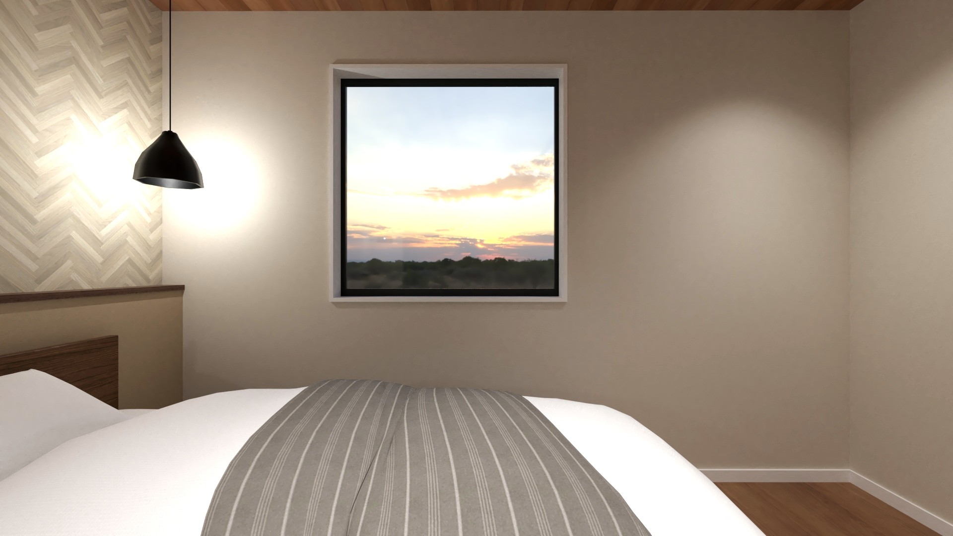 主寝室の大きなスクエア窓からは抜け感のある眺望が望め、一日の疲れを癒してくれます。