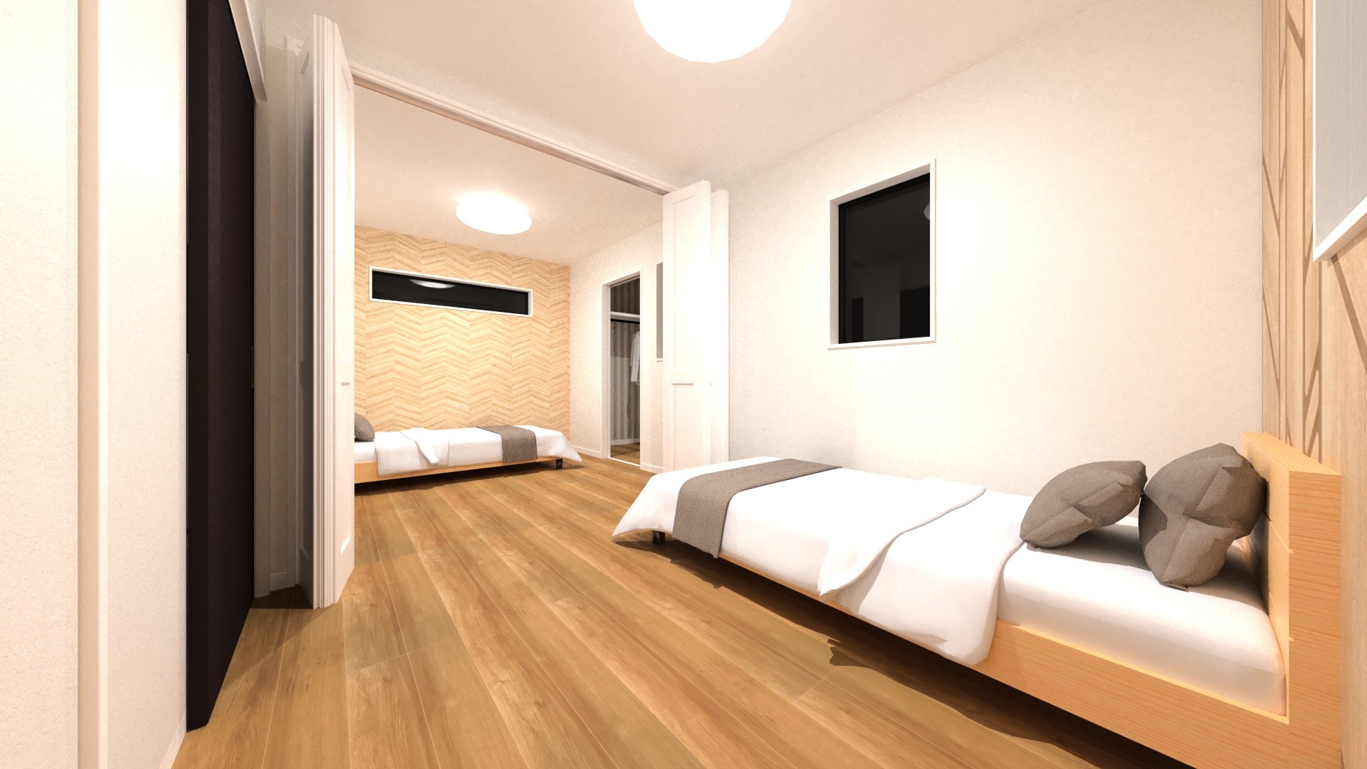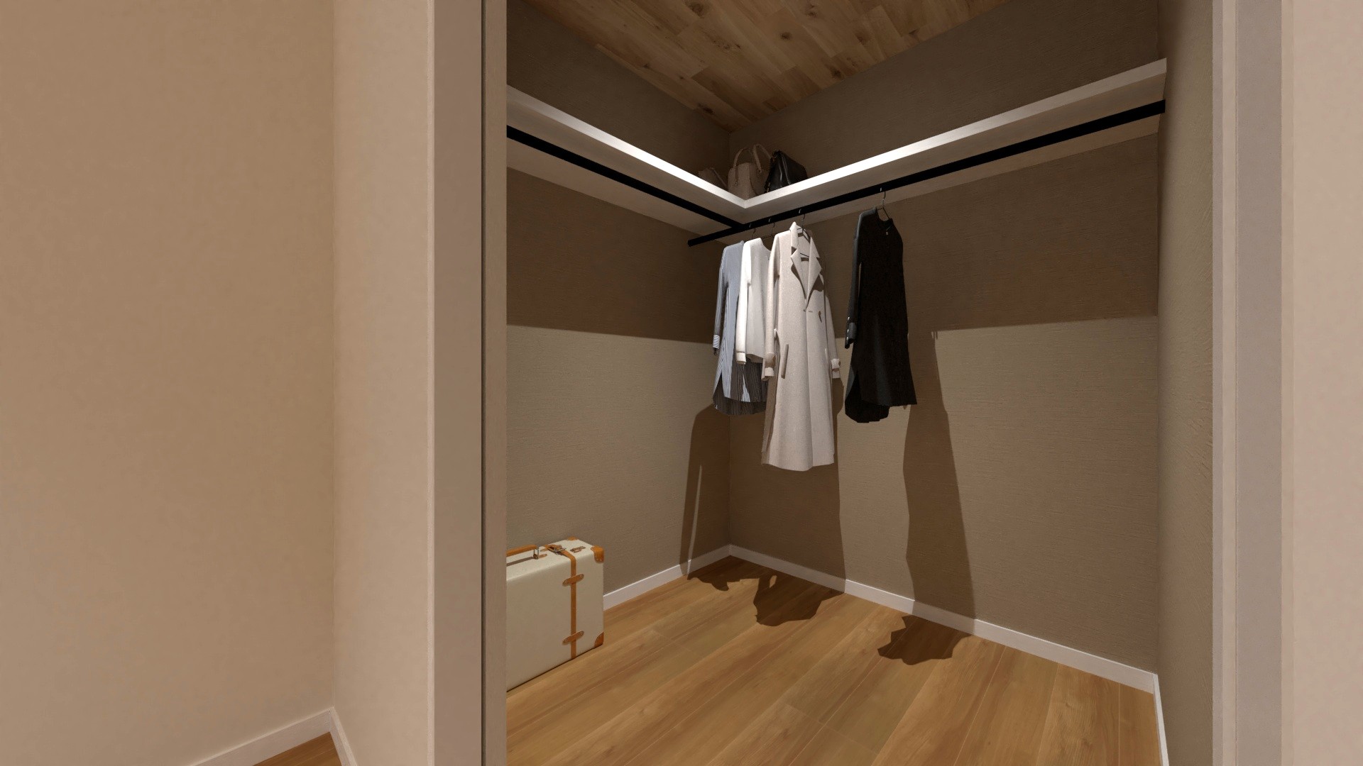 デッドスペースになりがちな階段下は、玄関からの収納スペースとして有効活用。2階にはウォークインクローゼットを2ヶ所配置しました。季節物も趣味の道具も、場所を決めて収納できるから、お部屋はいつも綺麗に保てます。