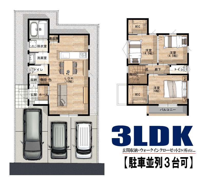 駐車並列3台可!来客時や将来のご家族の成長にも柔軟に対応します。