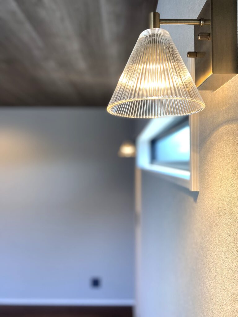 こちらにもブラケットライトを採用。おしゃれな照明器具が空間の主役として輝いています。