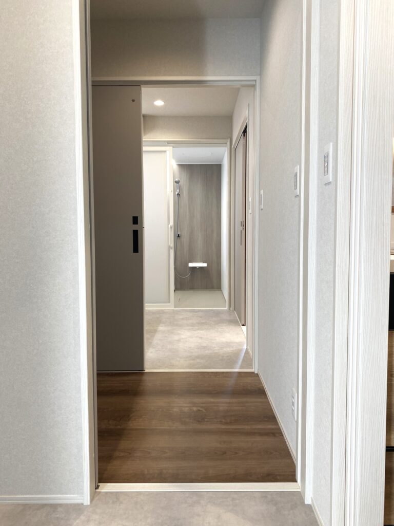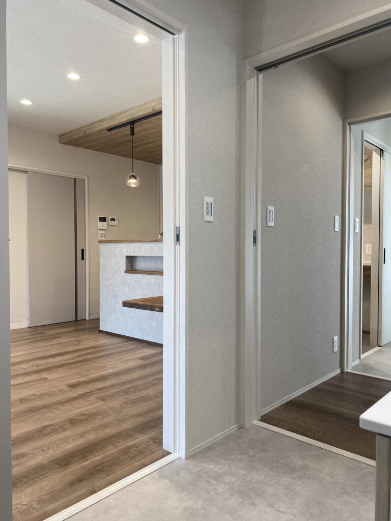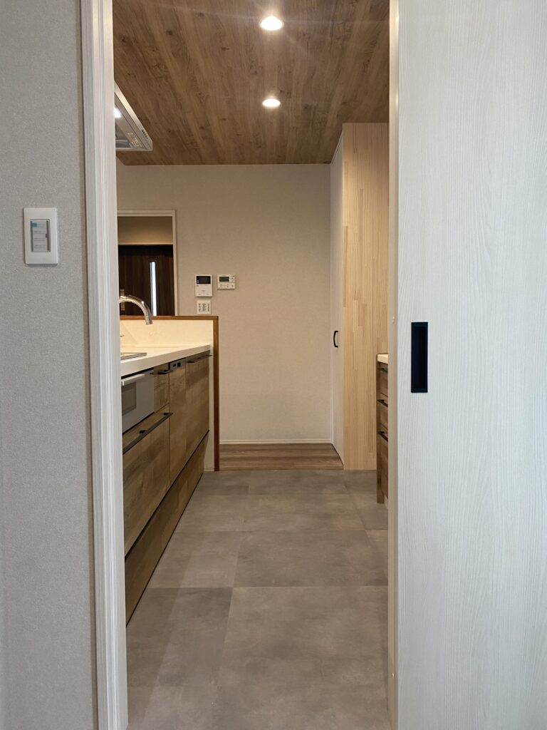 LDKから洗面室へのアクセスも良好。家族の生活動線を考え抜いた間取りです。