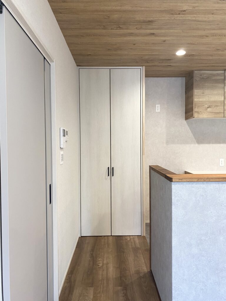 キッチン横にはパントリーを完備。ストック品もすっきり収納できます。