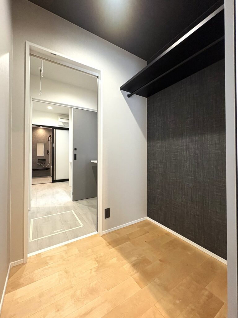 正面には同色系・質感違いの抽象柄クロスを効かせ、上品なアクセントを添えています。