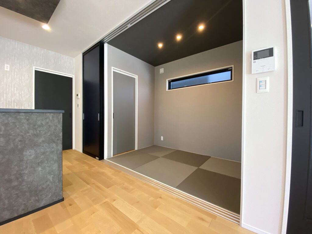 キッチン、和室、それぞれの空間が引き立つ黒。