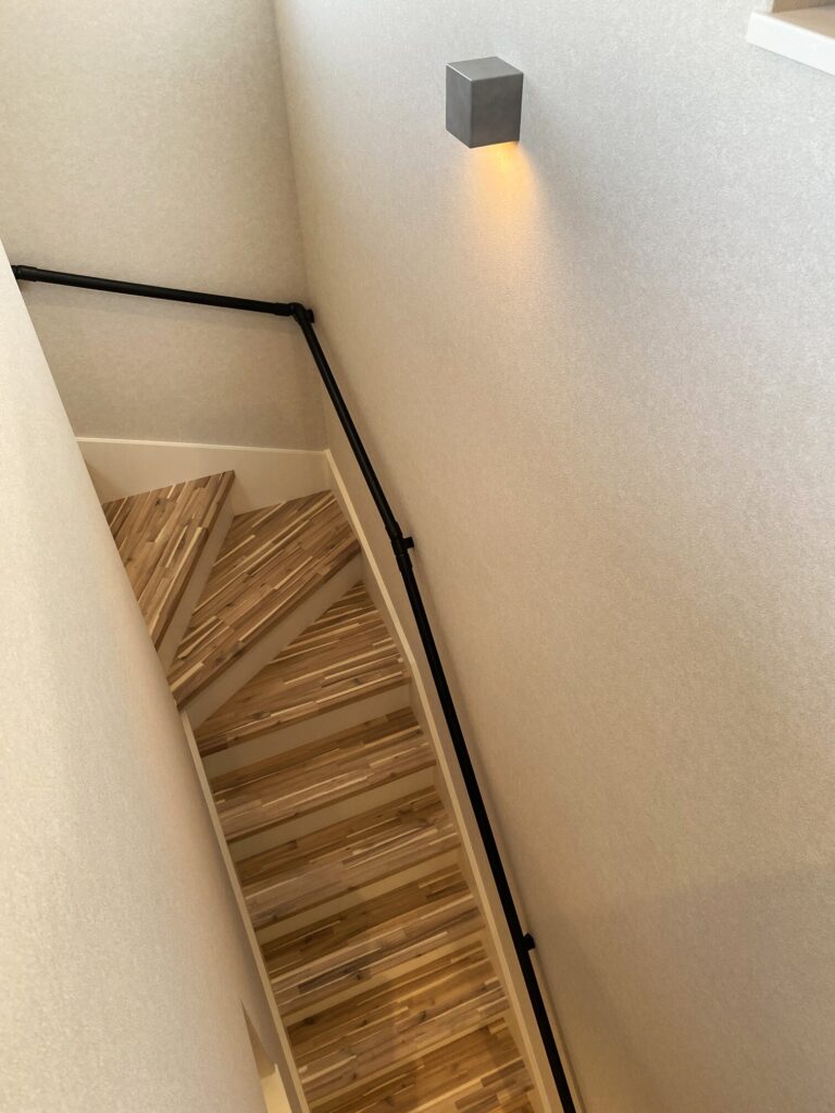無垢アカシア集成階段の色味はグローホワイトアッシュ。東北樺の無垢フローリングとの相性もぴったりです。