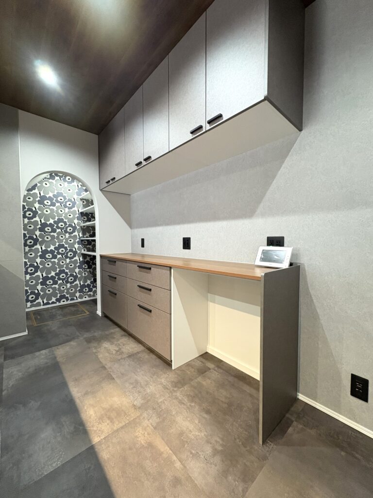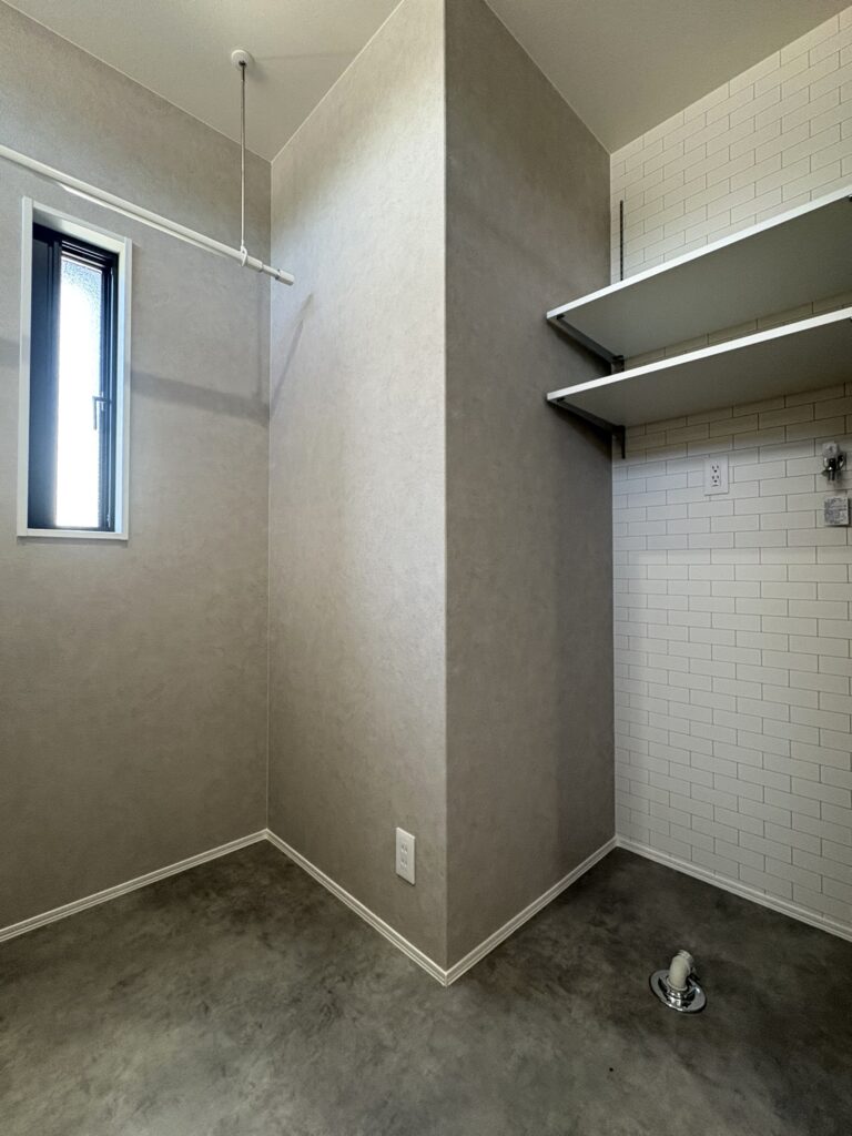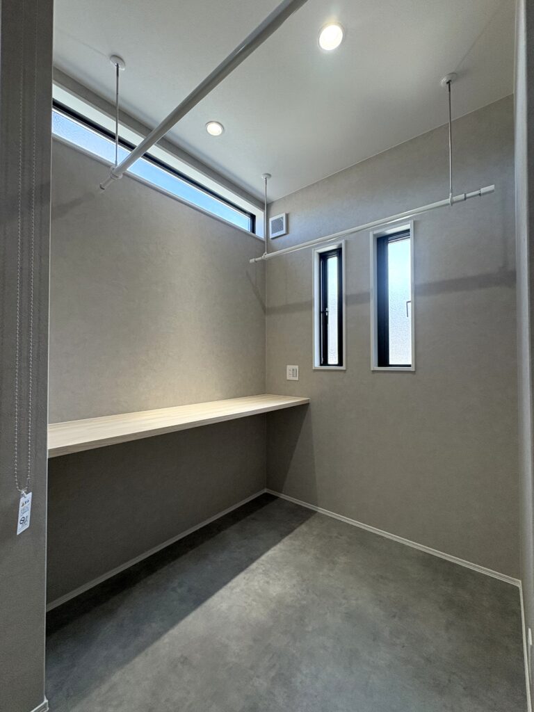 洗濯が好きな妻が広々と家事ができるように作り棚や、来客時に隠せるロールカーテンなど、こだわりをつめこみました。