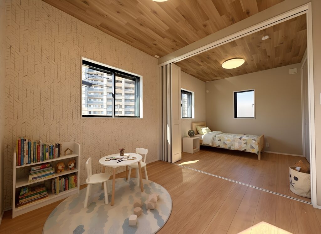 子ども部屋はシンプルに仕上げ、お子様の成長に合わせて自由にアレンジできるようにしました。