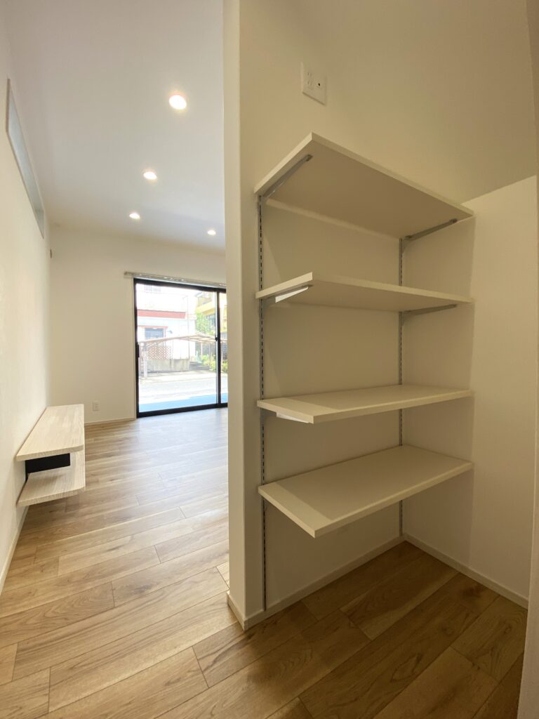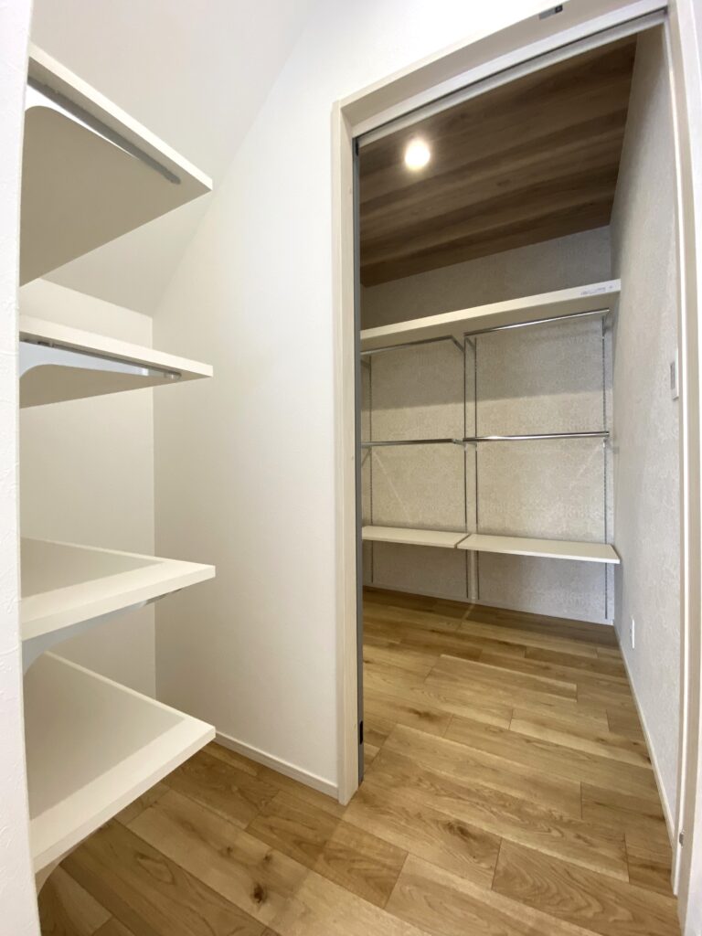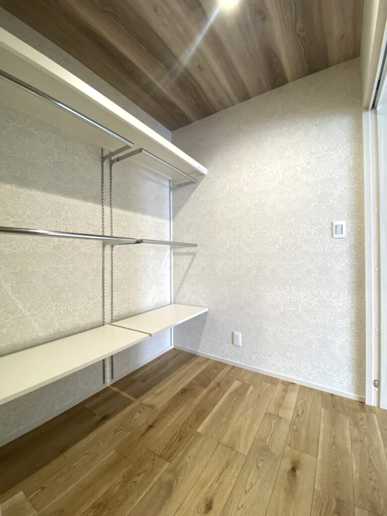 クローゼットの中も、自在棚とパイプでどちらも使えるようにしてもらうなど、固定しない使い方ができるようにしてもらいました。
