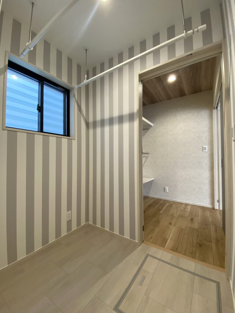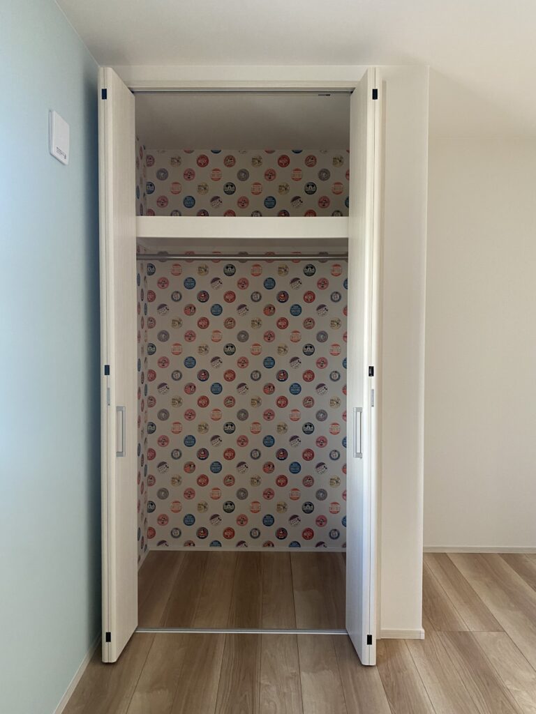 シンプルでも、ちょっとかわいい壁紙も使ってみたかったので、あまり見えないクローゼットの中やトイレなどに使いました。
