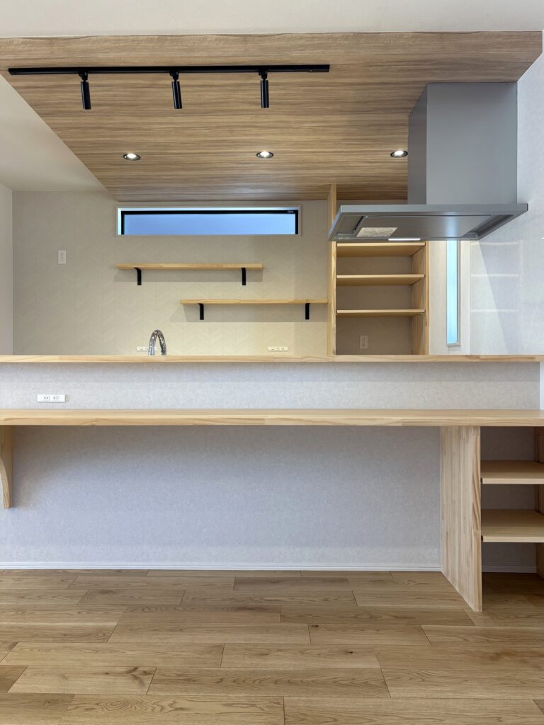 キッチン前には、空間に自然となじむ造作のダイニングカウンターを設けました。